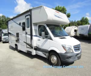 Class C: Class C motorhome rentals are self-contained units that are built onto a van frame so that they don’t have to be towed by a vehicle. They are generally 20 to 28 feet in length.